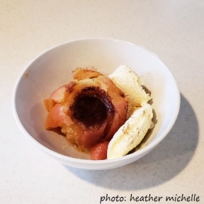 Combine the brown sugar, spices and salt. Put a teaspoon or so of raisins, currants or dried cranberries in each apple and cover with a tablespoon of the sugar mixture. Dot each one with a teaspoon of butter and put them right in the bottom of the Instant Pot – no trivet required.