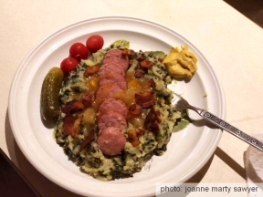 A Dutch comfort food: smoked sausage and a potato-kale mash. Switch it up by substituting other vegetables for the kale: broccoli, carrots, turnip, cabbage, whatever strikes your fancy.