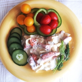While it's cooking, slice the salmon into 1/2” strips and chop the dill. When the IP is done, press Cancel and flip the valve from Sealing to Venting for a quick release and when the pin drops, remove the lid. Quickly stir in the mustard, pepper and salmon pieces. Close the pot, flip the valve back to Sealing, press Pressure Cook again and set the time for one more minute.