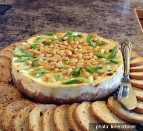 Decorate this glorious cheesecake with whatever suits your fancy: beautiful greens, cherry tomatoes, strawberries, fresh herbs, olives or nuts.