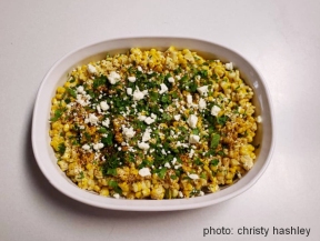 If using in-husk corn, force the cob out by squeezing the top end of each cob - kind of like a tube of toothpaste. With a sharp knife, cut the corn off of each cob and put it in a bowl.