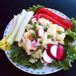 Scoop the diced egg into the vegetable mixture and add the drained potatoes. Stir everything together and then taste and add salt and pepper if needed. Cover and refrigerate for at least 2 hours.